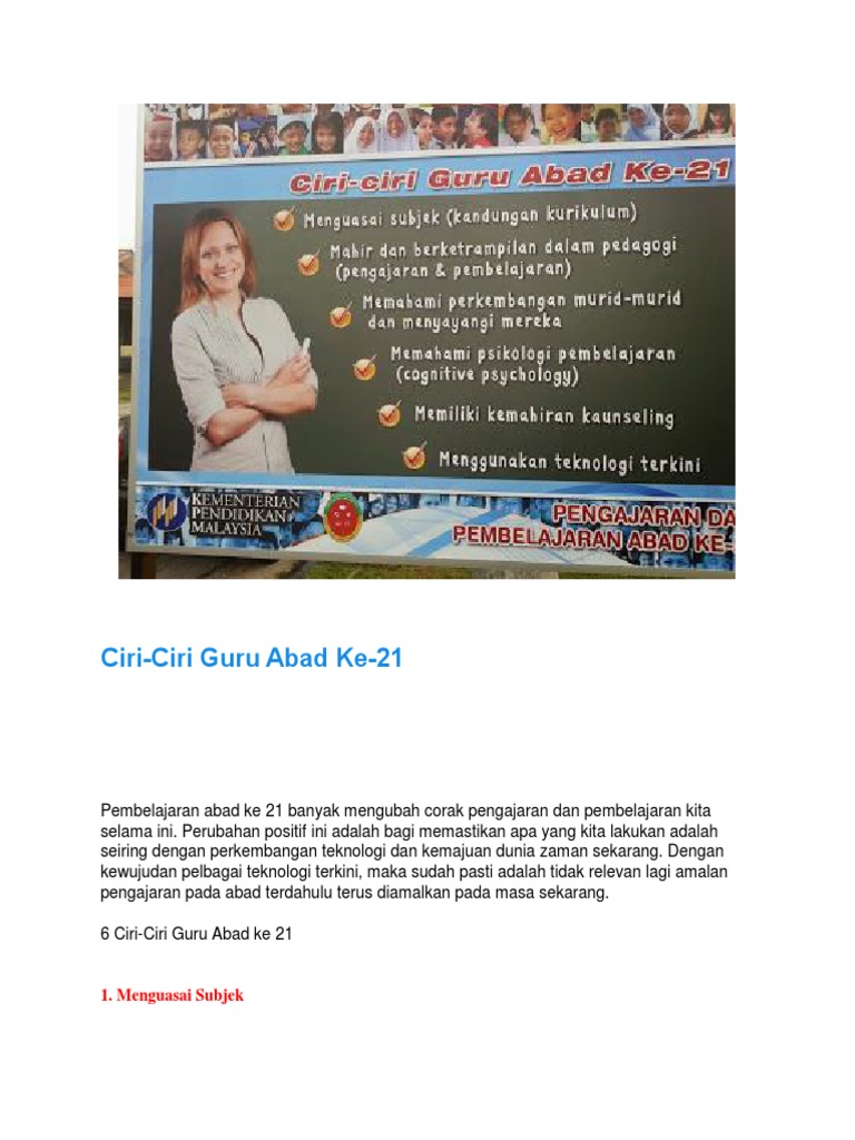 Ciri-Ciri Guru Abad Ke 21 : Pada 21 mei ia menyerahkan kekuasaan kepada wakil presidennya, habibie.. Hanya dengan memahami bagaimana minat dan respon pelajar ketika belajar, maka akan memang tidak dapat dinafikan penggunaan teknologi terkini merupakan salah satu ciri penting bagi guru abad ke 21. Guru abad 21 juga berupaya untuk memahami psikologi pembelajaran bagi para pelajarnya. Para guru indonesia adalah para pejuang pendidikan yang. Menguasai subjek (kandungan kurikulum) 2. Tugasan edu 3093 isu dan cabaran guru by ahmad nazri 21698.
