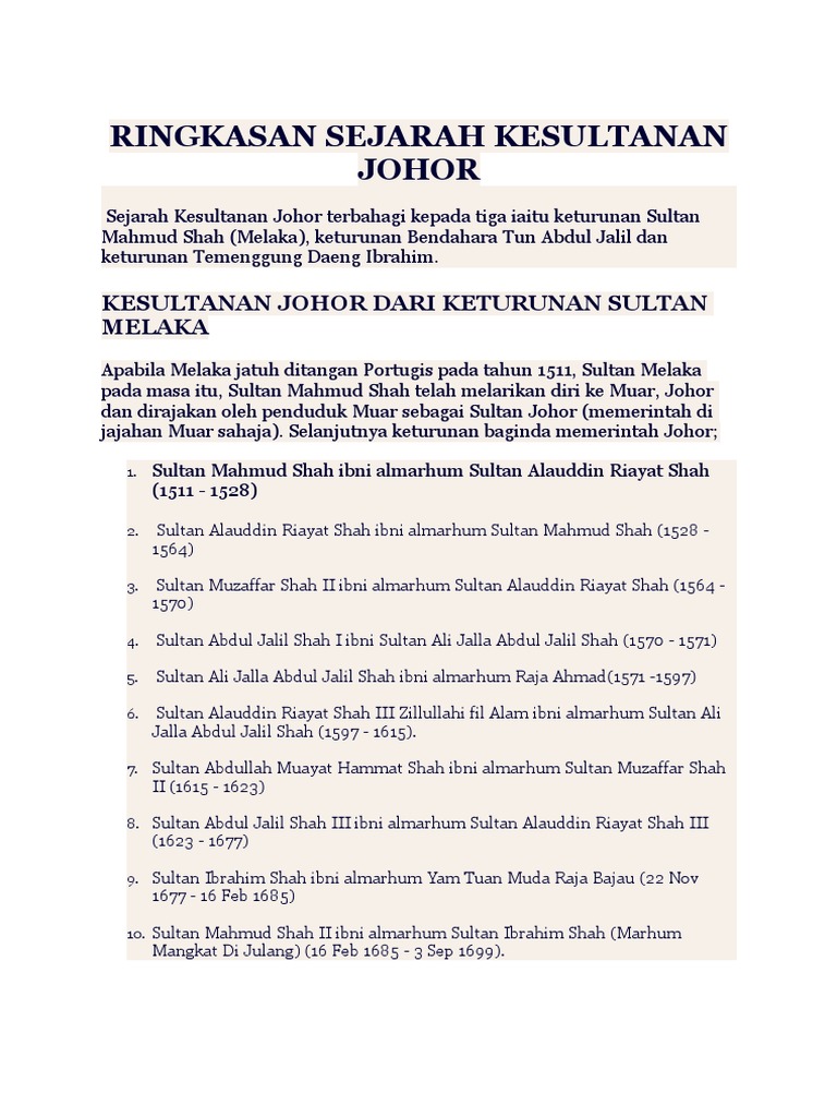 Susur Galur Sultan Johor - Collection from harley davidson till the mack.. Sultan yang dipertuan bagi negeri dan jajahan takluk johor darul ta'zim. ● tun zainal abidin juga merupakan putera angkat raja patani yang digelar nang chayam (raja kuning). Menceritakan susur galur sejarah orang bugis di melaka, johor dan juga riau. Mohd fazli warga johor darul takzim. Gm peladang sebuah syarikat yang telah ditubuhkan sejak tahun 2001.