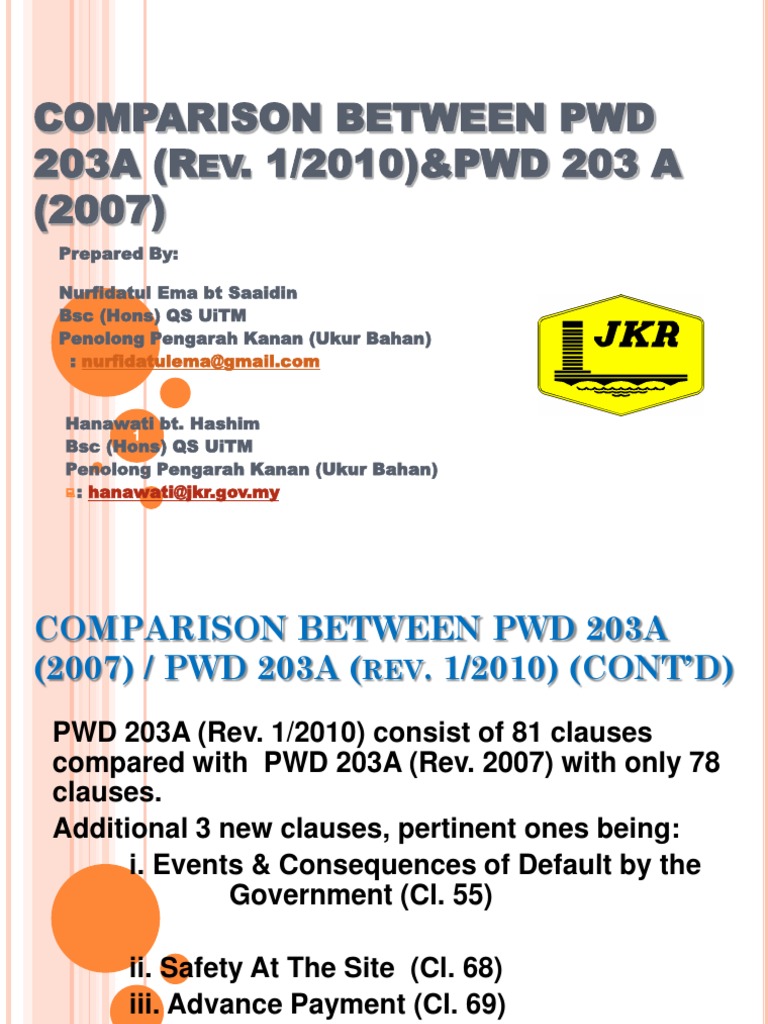 Related : Pwd Form 203A (Rev. 1/2010) Pdf Download - Difference Between Contract Form Jkr 203a Pam - Certificate of practical completion jkr 203w :.